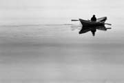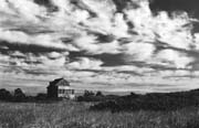 Leap forward to the next millenium for this picture, taken along the dunes on Duxbury Beach. I had often passed this little beach house and never found it of much interest until this early September morning, just after a cold front had passed through, leaving the air crystal clear, with the sky a deep blue to the horizon. The clouds you see where quite real. A deep red filter was needed to allow the photograph to evoke the same sense of boldness that I felt looking at the scene.